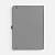 Ежедневник с твердой обложкой без поролона, выполнен из материала Soft Touch, серый СС, дополнен резинкой шириной 1 см, петлей-резинкой для ручки, капталом и ляссе серого цвета.