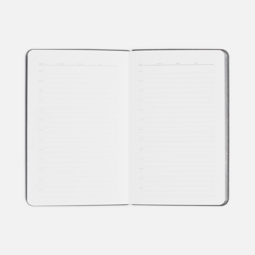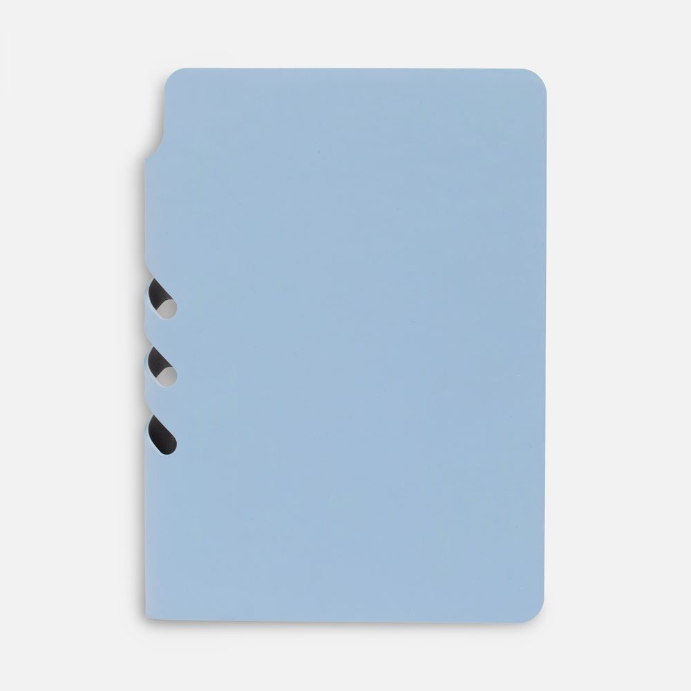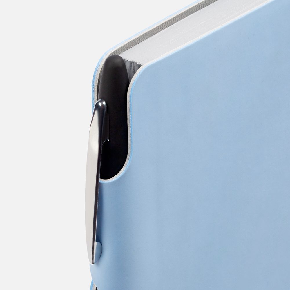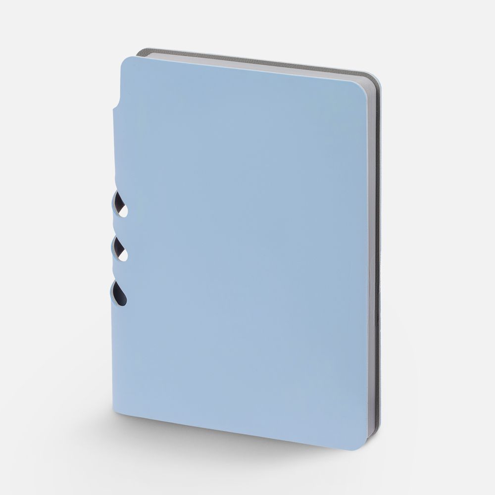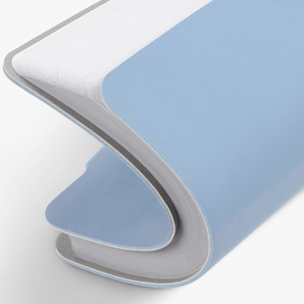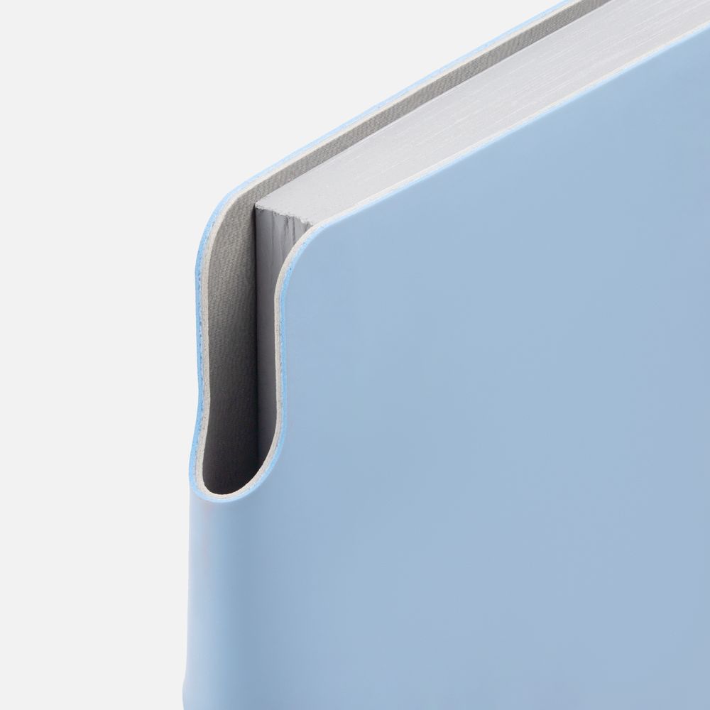 Ежедневник с гибкой обложкой выполнен из материала Soft Touch, голубой JJ и серого Latte (внутренняя часть обложки).