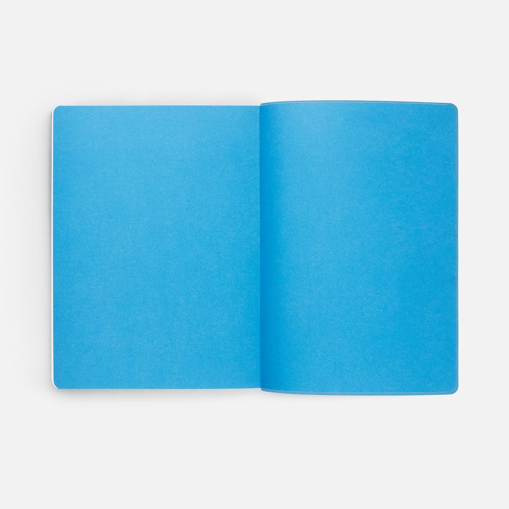 Гибкая обложка выполнена из материала Soft Touch, голубой JJ и Latte, голубой JJ (внутренняя часть обложки). Внутри корешка — специальное место для крепления ручки размером до 15х1 см.
