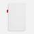 Гибкая обложка, материал обложки — Soft Touch, белый BB; внутренний материал — Latte красный РР; материал петли для ручки — Nice Touch Ultra, красный РР. Срез обложки окрашен в красный цвет.