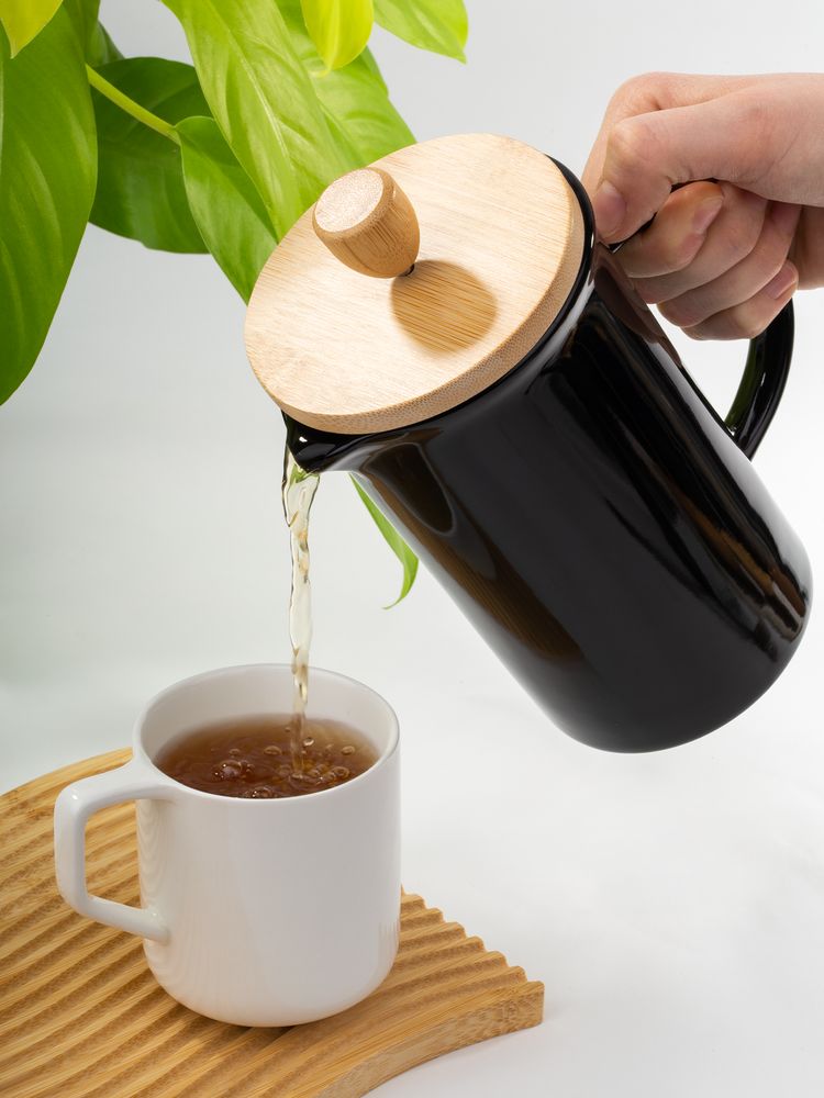 Элегантный керамический френч-пресс Mezzo в глянцевом черном исполнении — функциональный кухонный аксессуар и украшение любого пространства, от уютной домашней кухни до стильного офиса.Емкость 600 мл.
