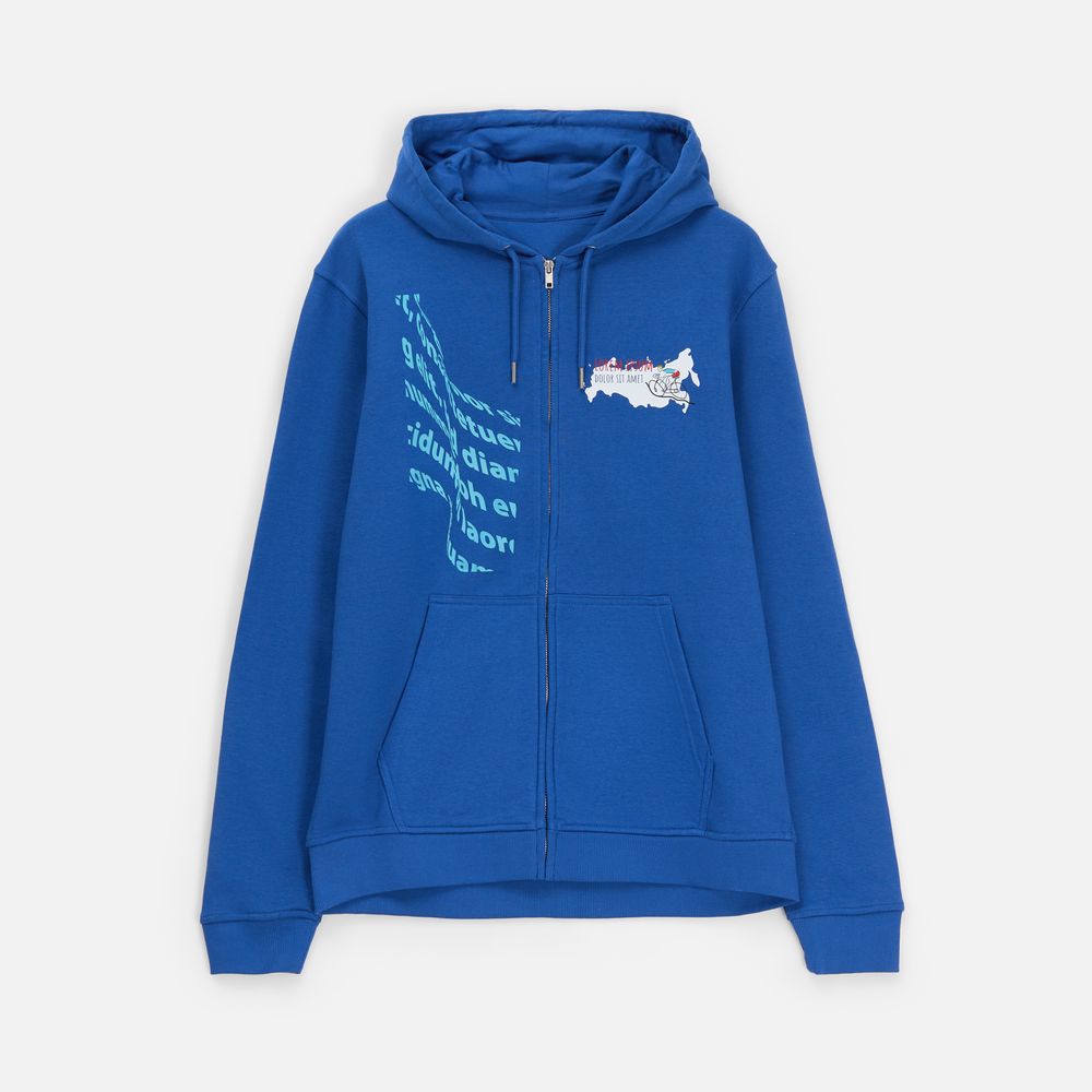 Базовая толстовка унисекс на молнии выполнена из органического хлопка и переработанного полиэстера.
