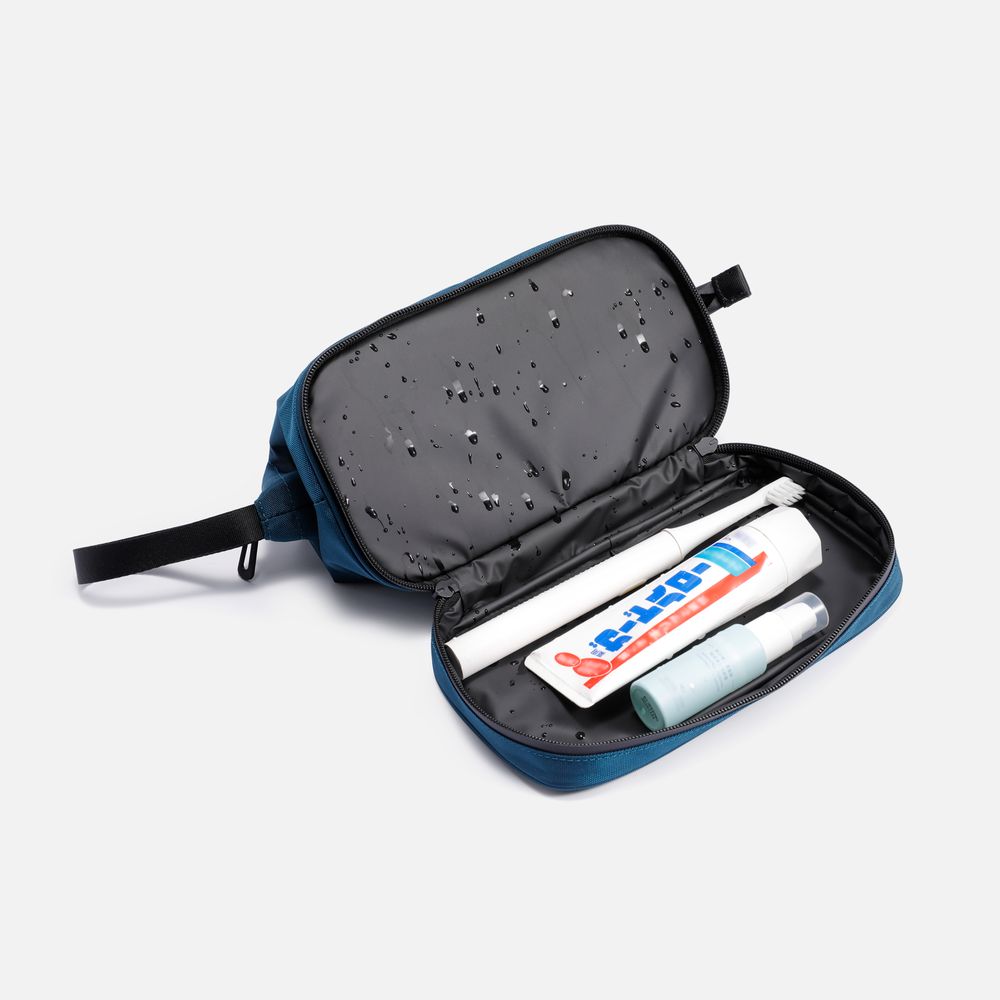 • Объем 1,5 л — достаточно для стандартного набора туалетных принадлежностей