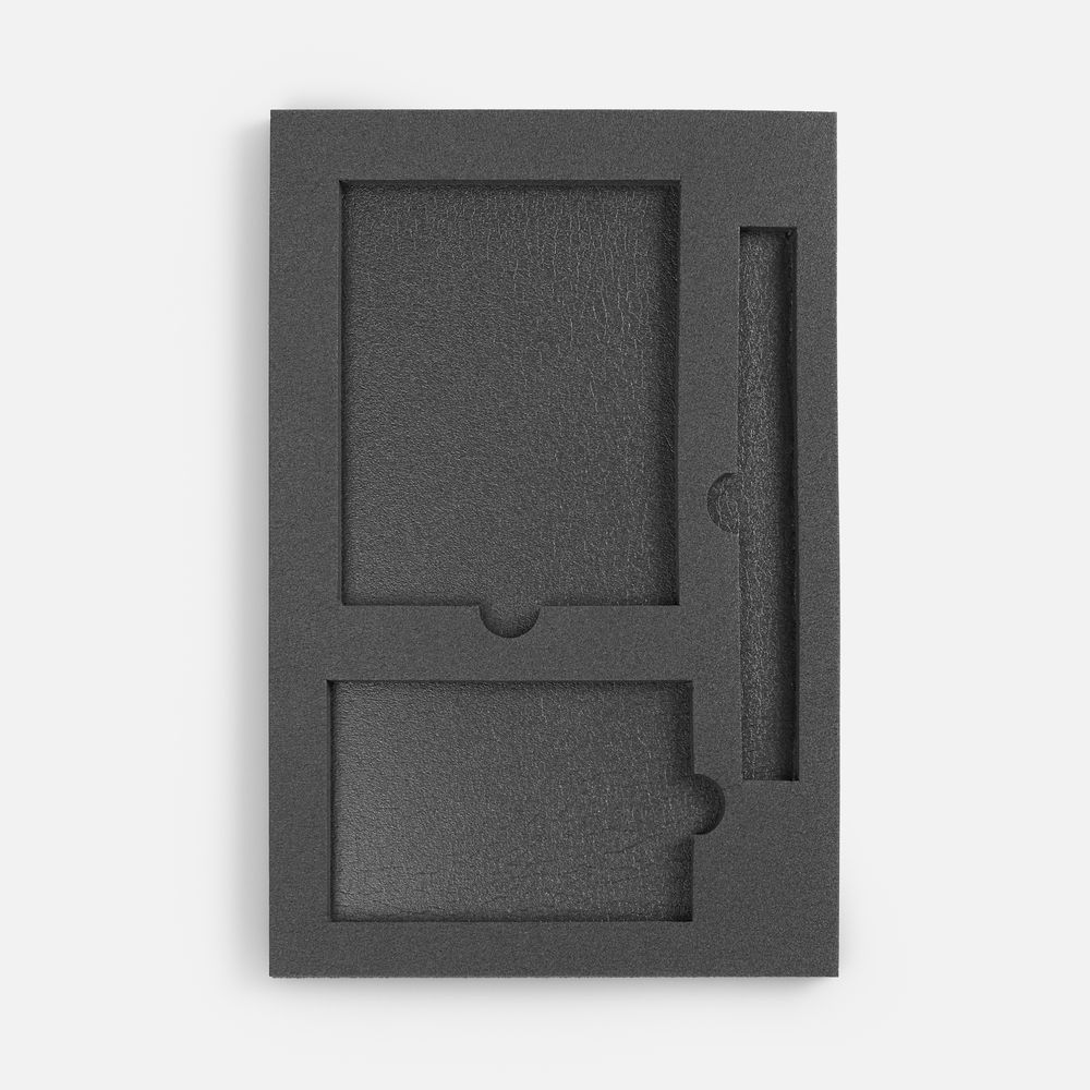 Приложите к заказу оригинал-макет в формате .pdf, выполненный согласно техническим требованиям. С техническими требованиями можно ознакомиться на вкладе «Файлы».Ложемент, изготовленный из материала Izolon 500 черного цвета, представляет собой многослойную конструкцию, состоящую из нижнего слоя толщиной 5 мм и верхнего слоя толщиной 10 мм. В соответствии с утвержденным макетом, проемы для размещения предметов могут быть спроектированы как в одном, так и в обоих слоях.