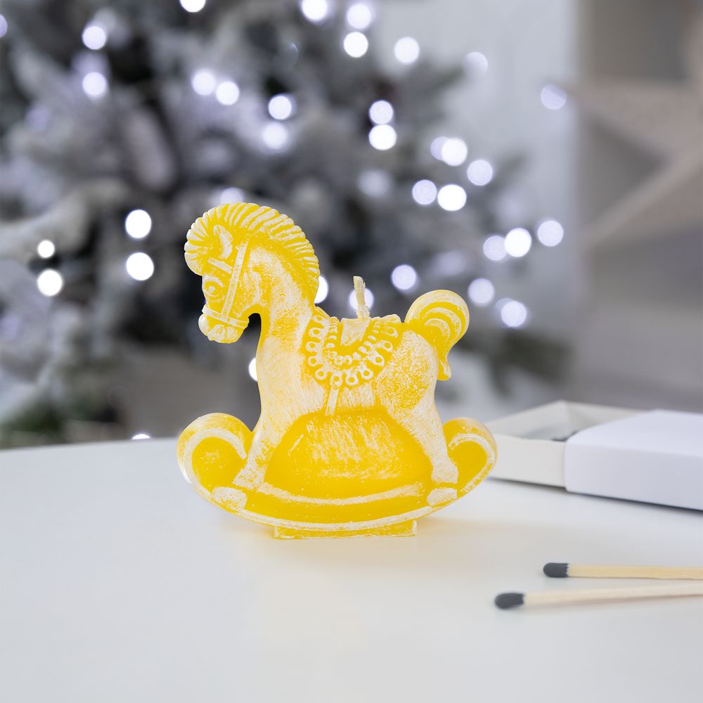 Свеча фигурная «Лошадка-качалка», желтая фото 4