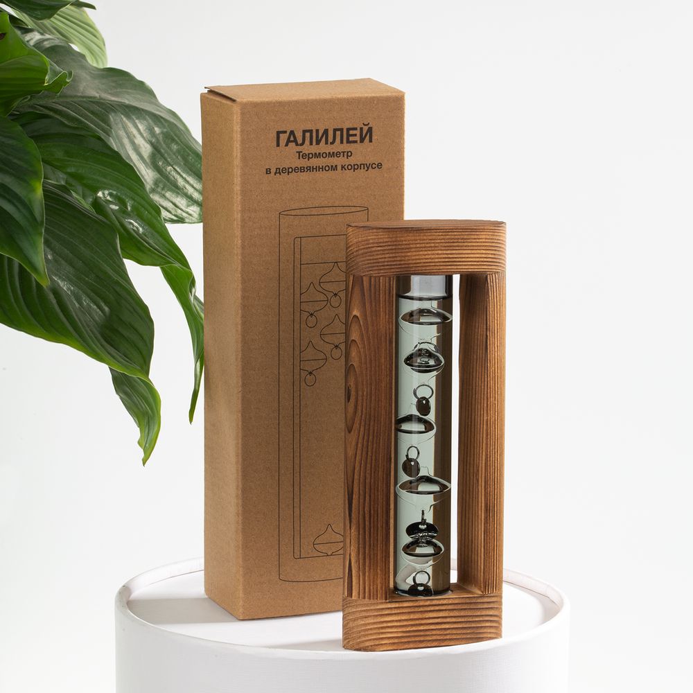 Купить Термометр «Галилей» в деревянном корпусе, серый 17696.10 с логотипом в Калининграде