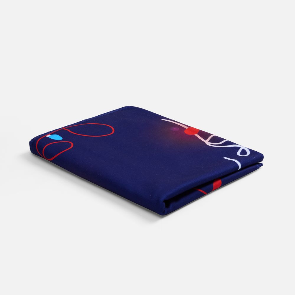 Праздничный плед-пожелание: лаконичное и воодушевляющее. Все сбудется! Стоит только загадать самое главное и стремиться к своей заветной мечте. А Вселенная подскажет, обнимет и согреет — прямо как этот красочный мягкий плед, словно по-настоящему мерцающий яркими огоньками.
