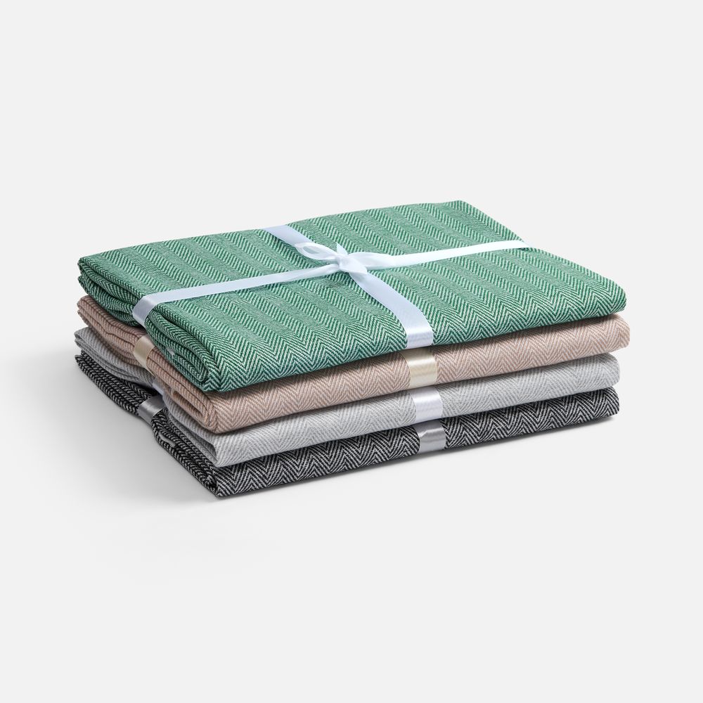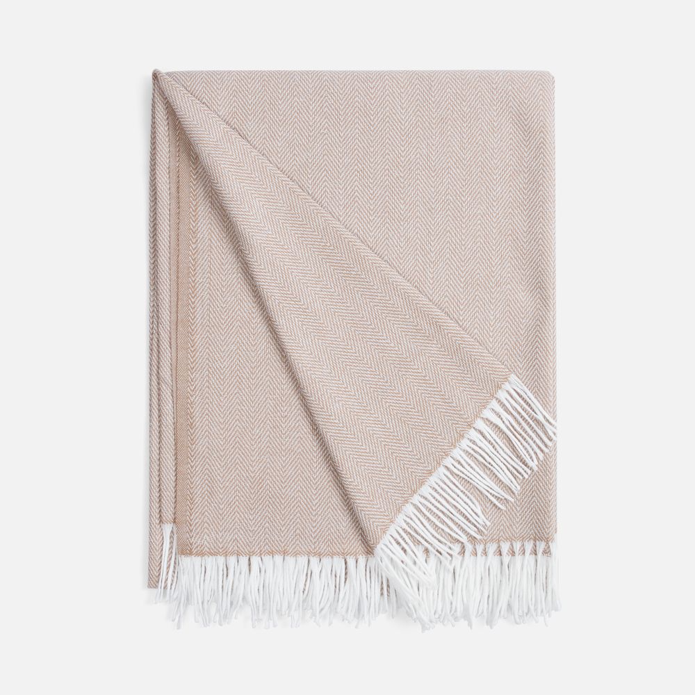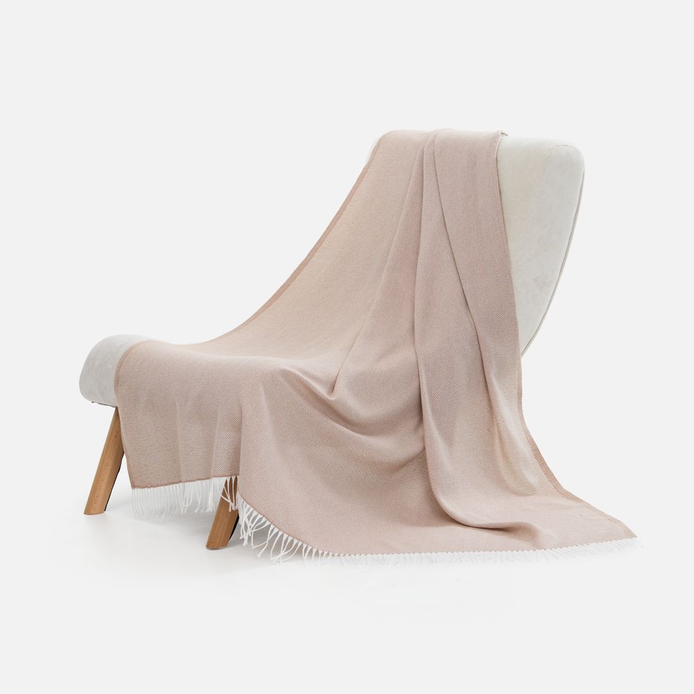 Классический рисунок «елочка» не слишком привлекает внимание, но в то же время добавляет изюминки. Смешанный состав пряжи продлевает срок службы и существенно облегчает уход за пледом.