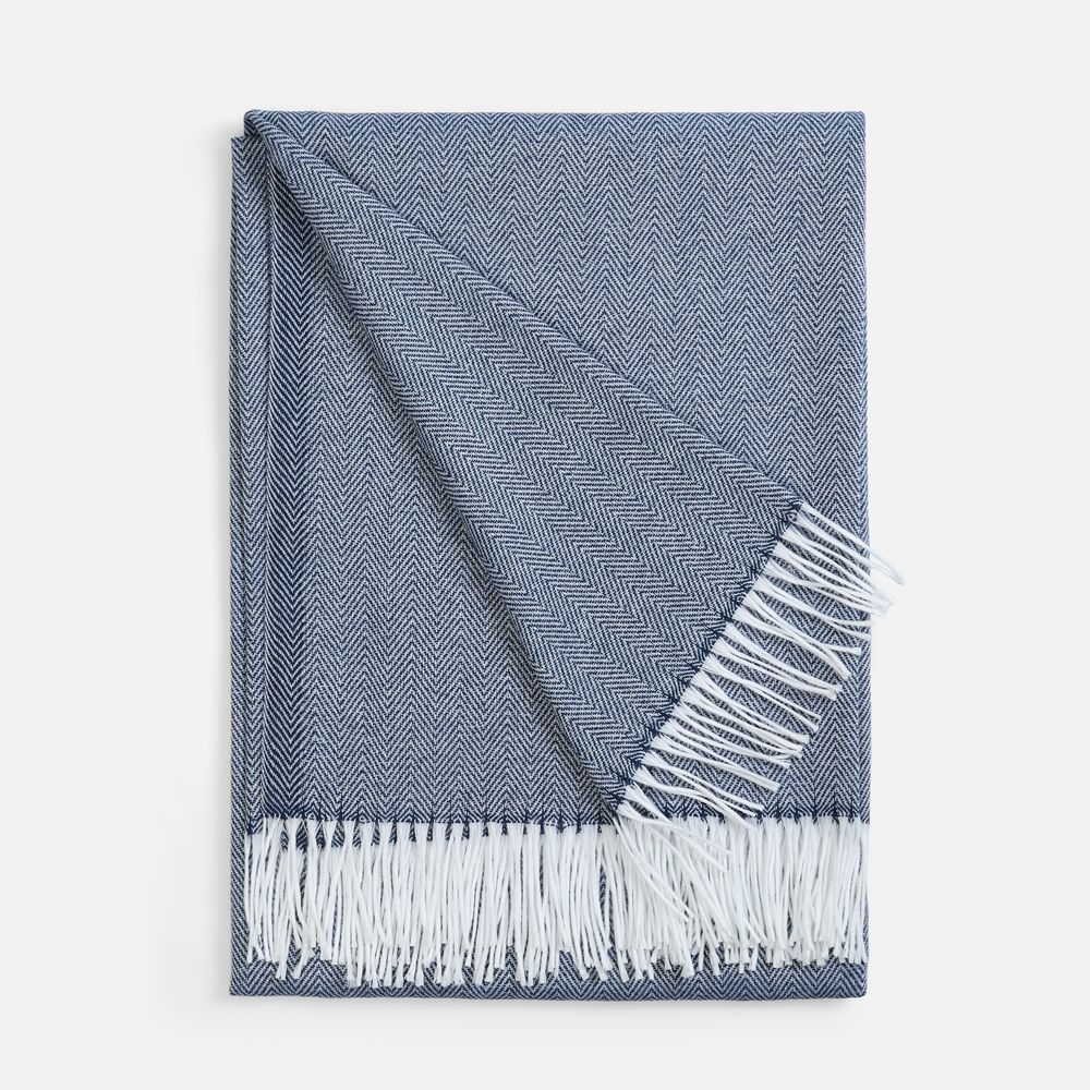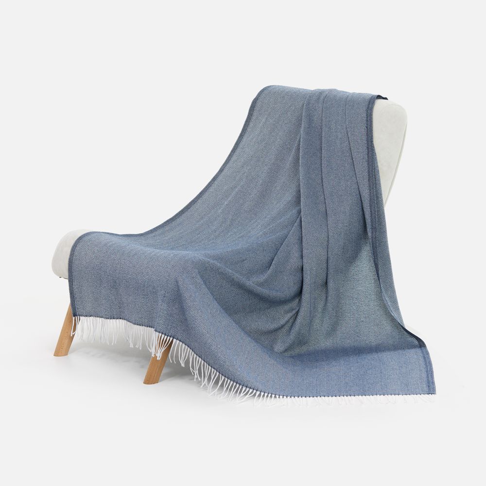 Классический рисунок «елочка» не слишком привлекает внимание, но в то же время добавляет изюминки. Смешанный состав пряжи продлевает срок службы и существенно облегчает уход за пледом.