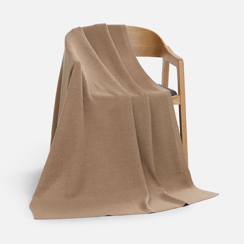 Плед Voyage соткан из мягкого сочетания шерсти и акрила — нежный, теплый и невесомый, он идеален для уютных вечеров. Кнопка позволяет превратить его в элегантную накидку, когда воздух становится прохладнее.