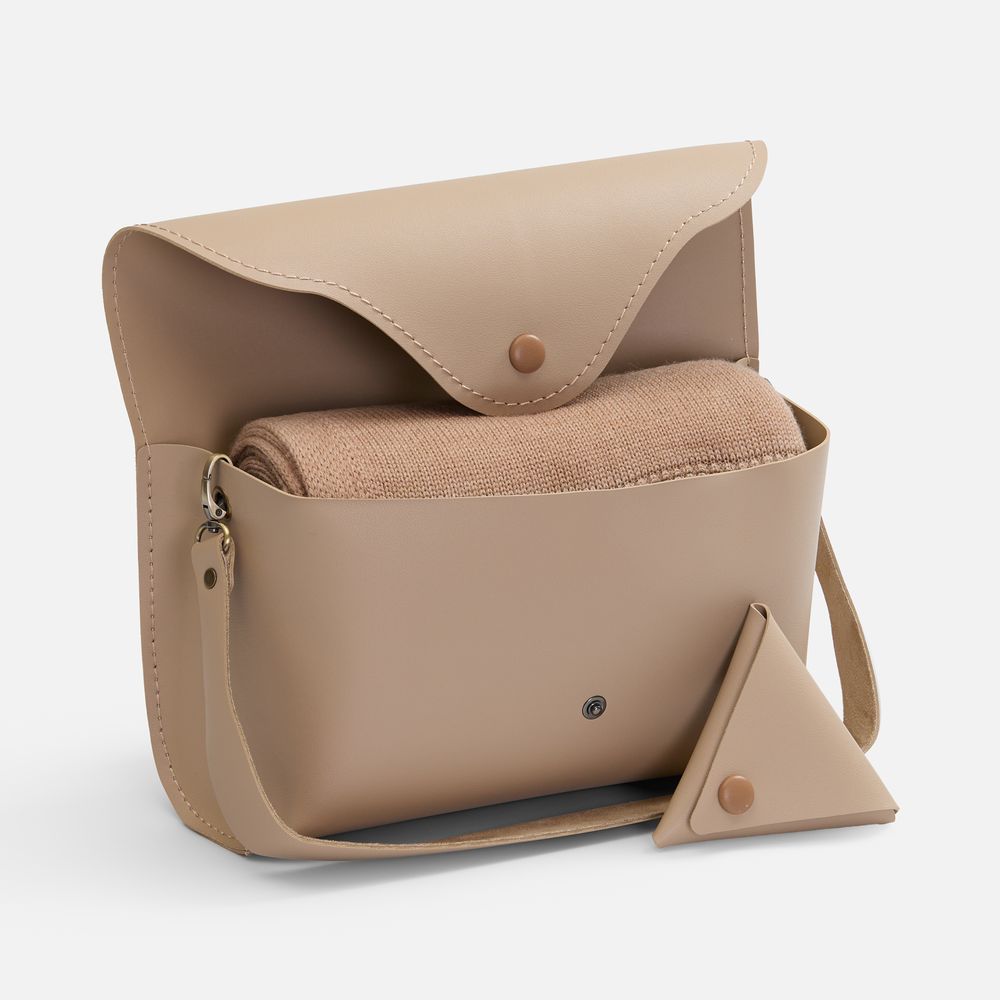 Плед поставляется в стильном кофре с аккуратным кошелечком на кнопке — продуманная деталь для удобного хранения и бережной транспортировки. Такой плед легко взять с собой в путешествие, он станет вашим любимым спутником в прохладное время года.
