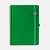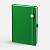Ежедневник с твердой обложкой без поролона, выполнен из материала Soft Touch Ultra, зеленый FF, дополнен резинкой шириной 1 см, петлей-резинкой для ручки, капталом и ляссе ярко-зеленого цвета.