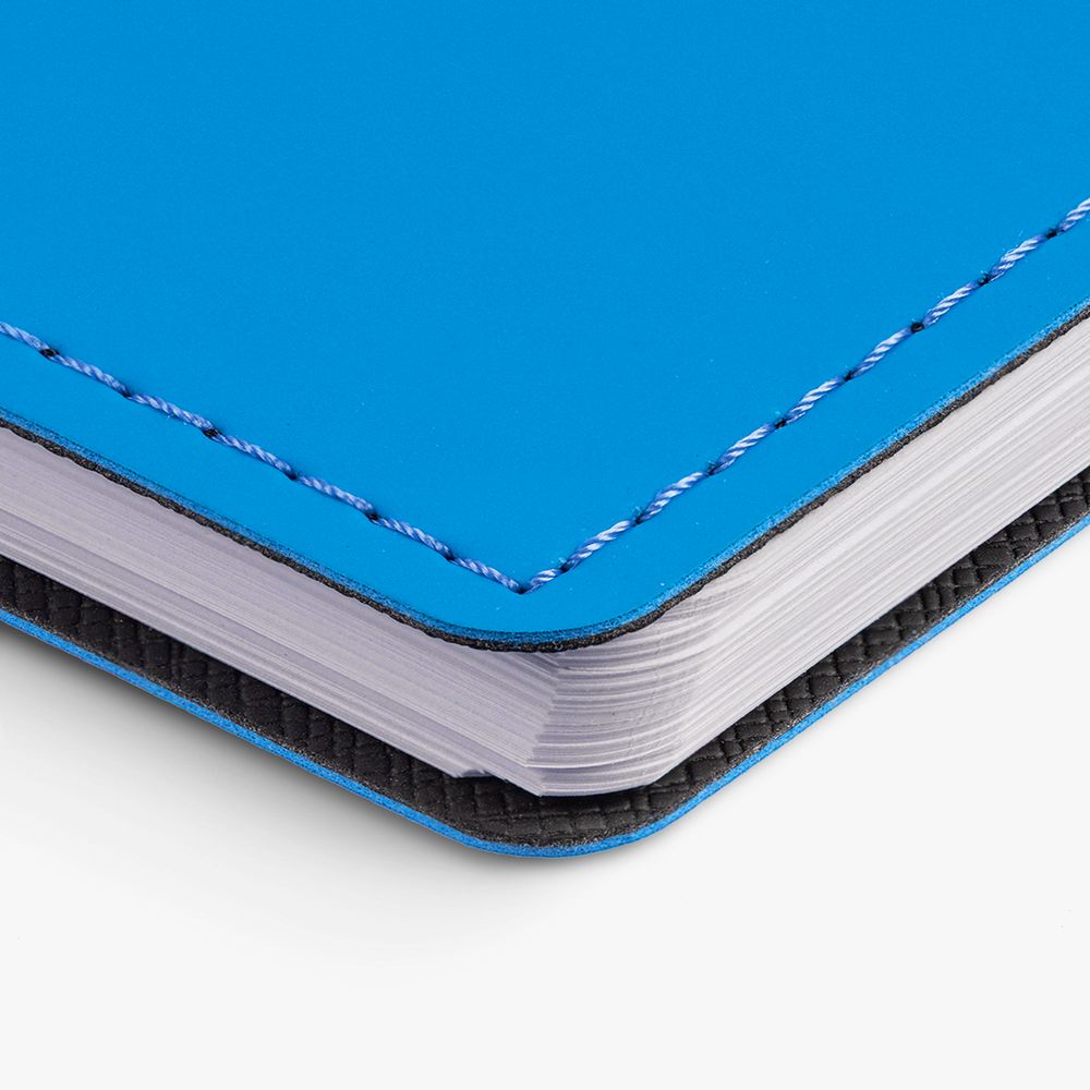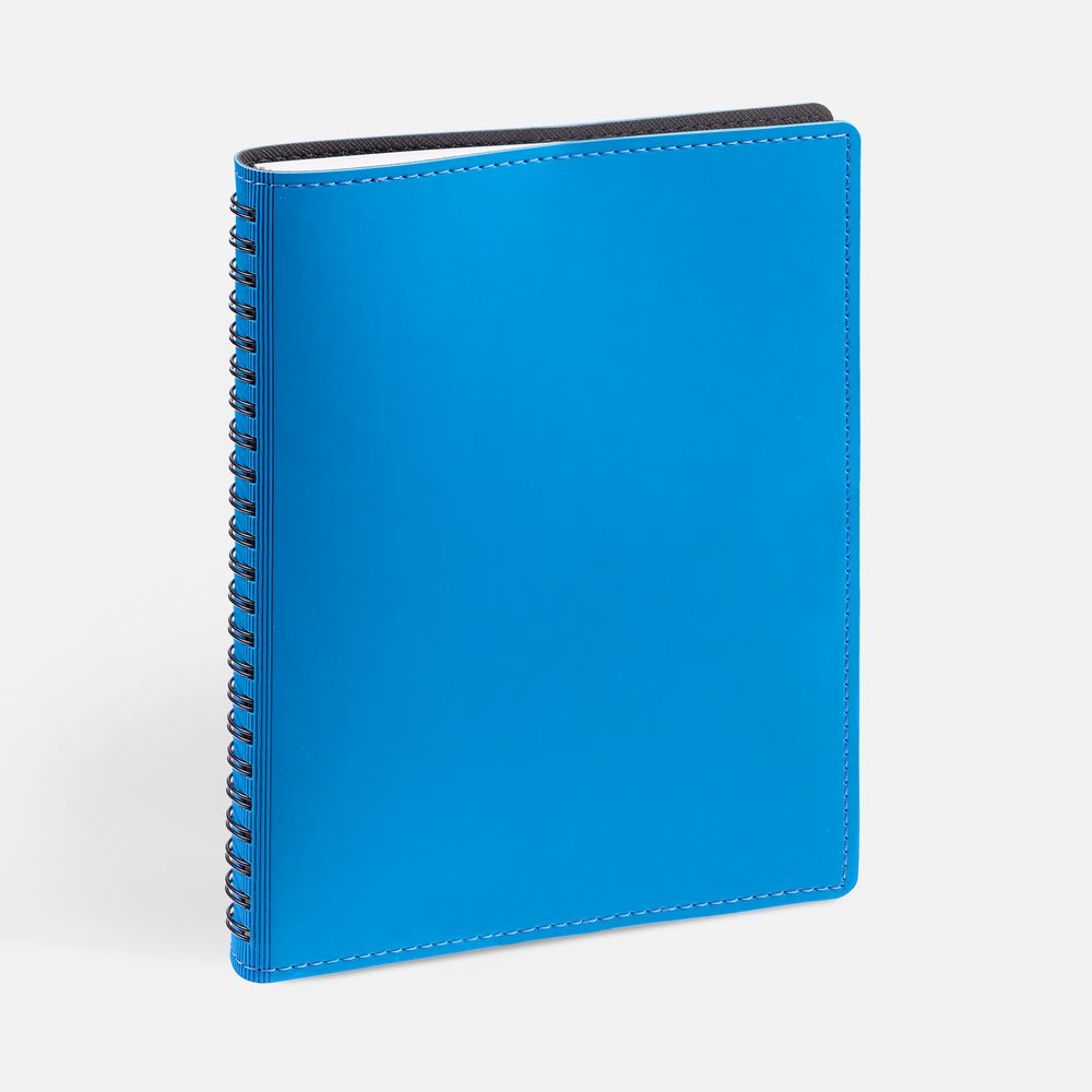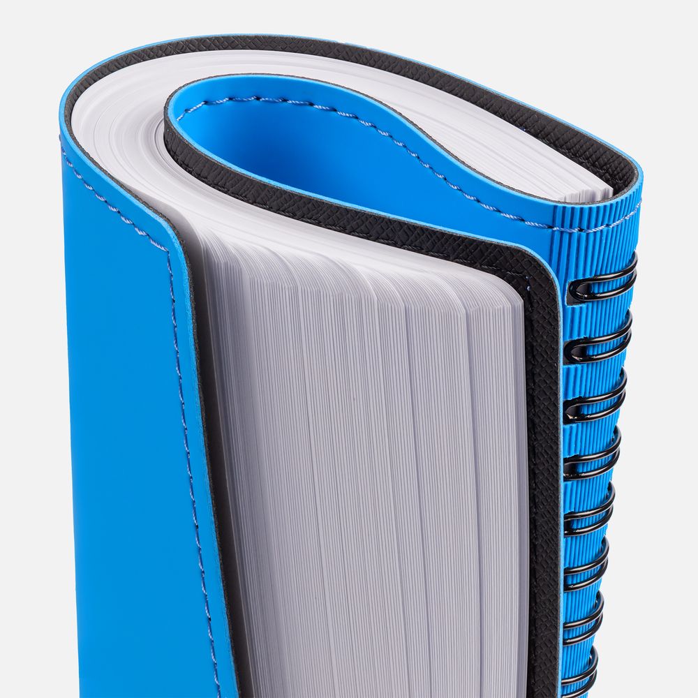 Ежедневник с гибкой обложкой, выполнен из материалов Soft Touch Ultra, голубой JJ и Nice touch, черный АА.