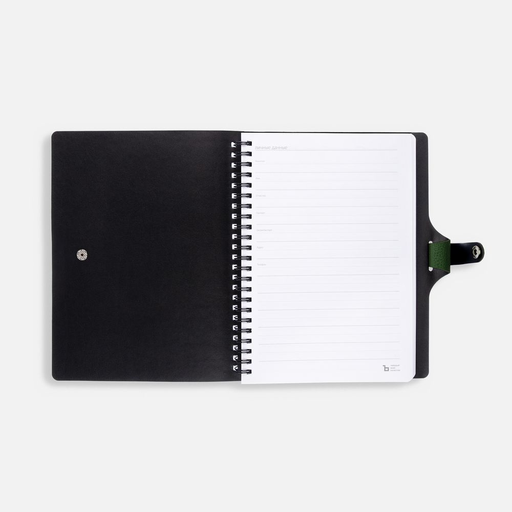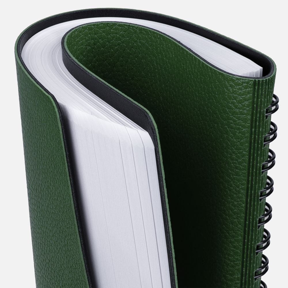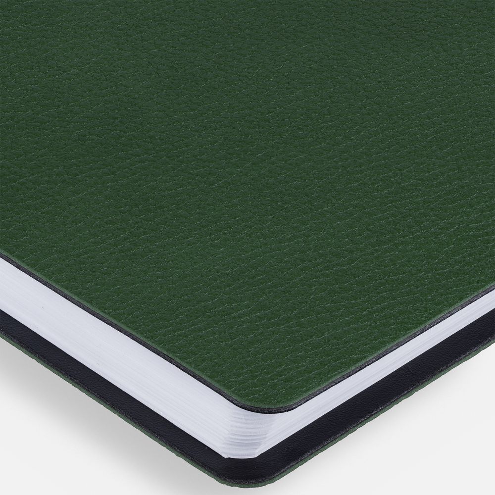 Ежедневник с гибкой обложкой, выполнен из материалов La Fite, зеленый FF и Waltz черный АА.
