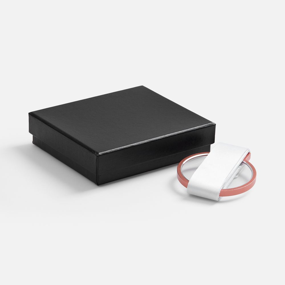 8,7х7,5x0,7 см; лента: 90х3 см; упаковка: 14х12х3,5 см