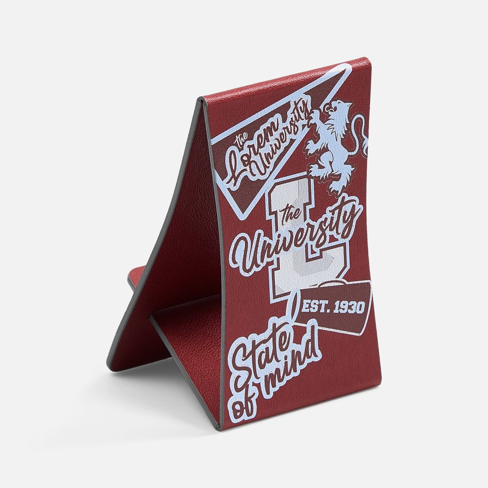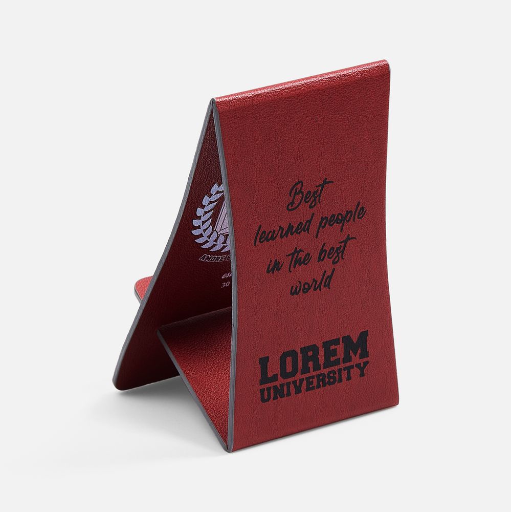 Складная подставка для телефона с вырубкой под шнур зарядного устройства. Выполнена из материала Petrus.