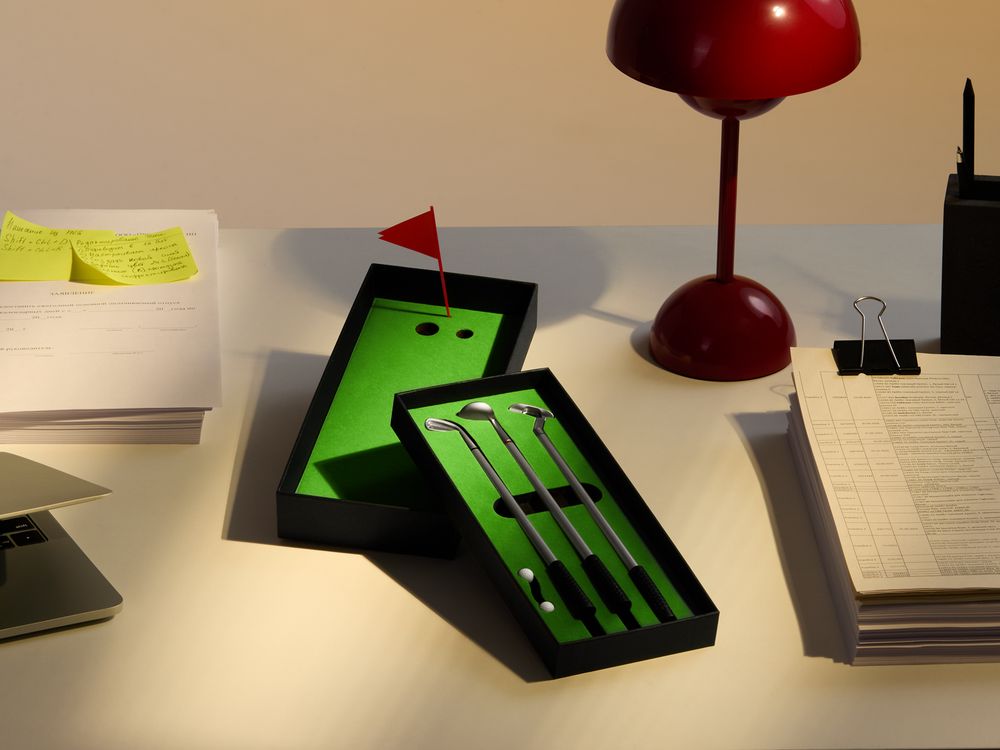 В комплекте: 3 клюшки-ручки со сменным стержнем с синими, черными и красными чернилами, 2 мячика для гольфа, флажок и подарочная коробка.Настольная игра Golfink — это идеальный вариант увлекательно провести время с друзьями, коллегами или семьей. Набор станет отличным подарком как для любителей гольфа, так и для ценителей настольных игр. Golfink поможет создать веселую соревновательную атмосферу, легко сплотит семью или коллектив.