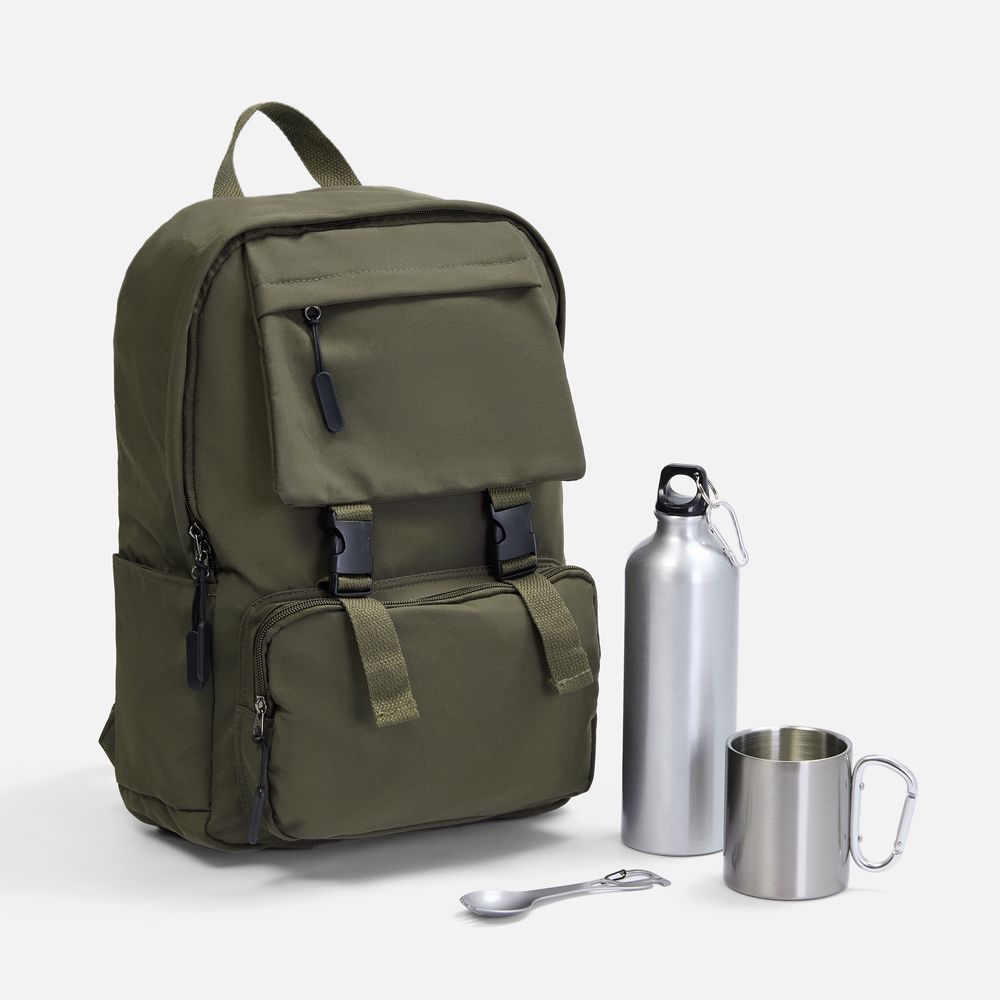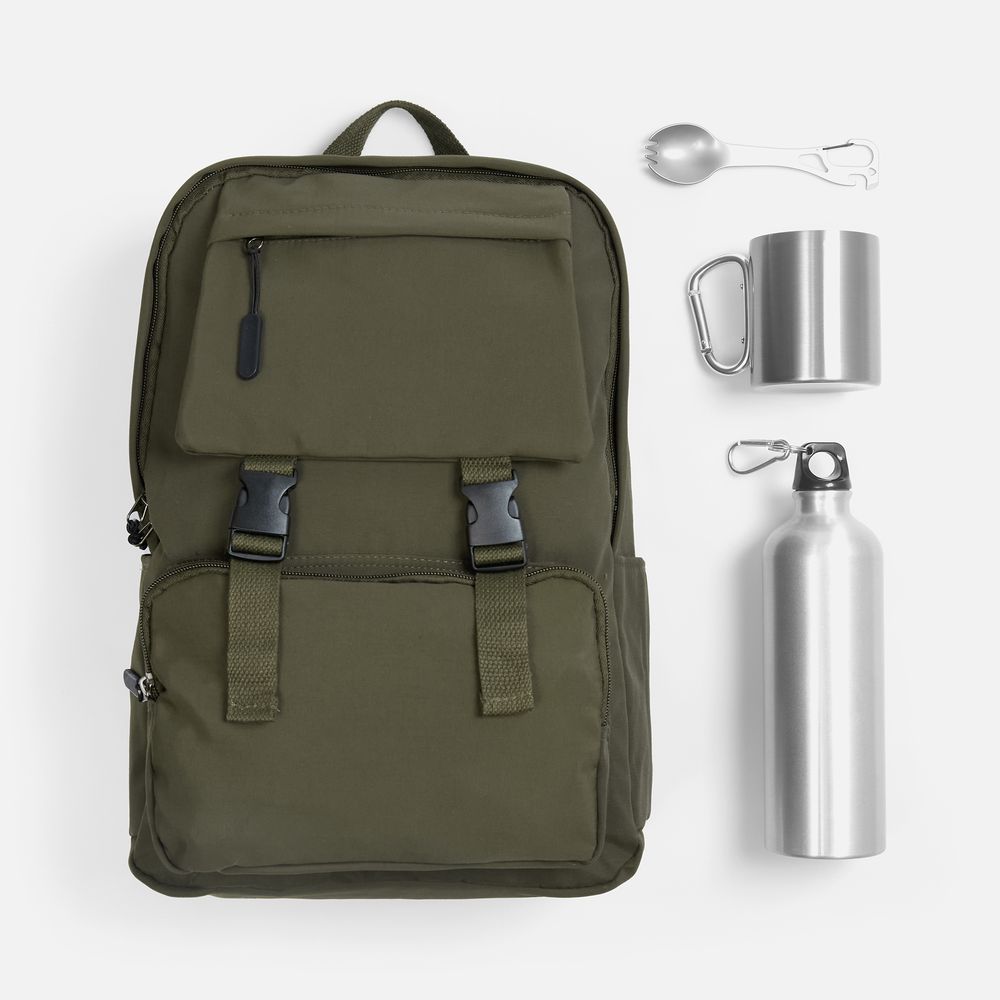 Походный набор TrekKing создан для тех, кто не привык сидеть на месте, ценит активный отдых на природе и новые впечатления. В городском рюкзаке с легким outdoor-акцентом здесь собрано самое главное, что всегда поддержит в пути, на пикнике или на прогулке — и выдержано в классическом походном стиле.