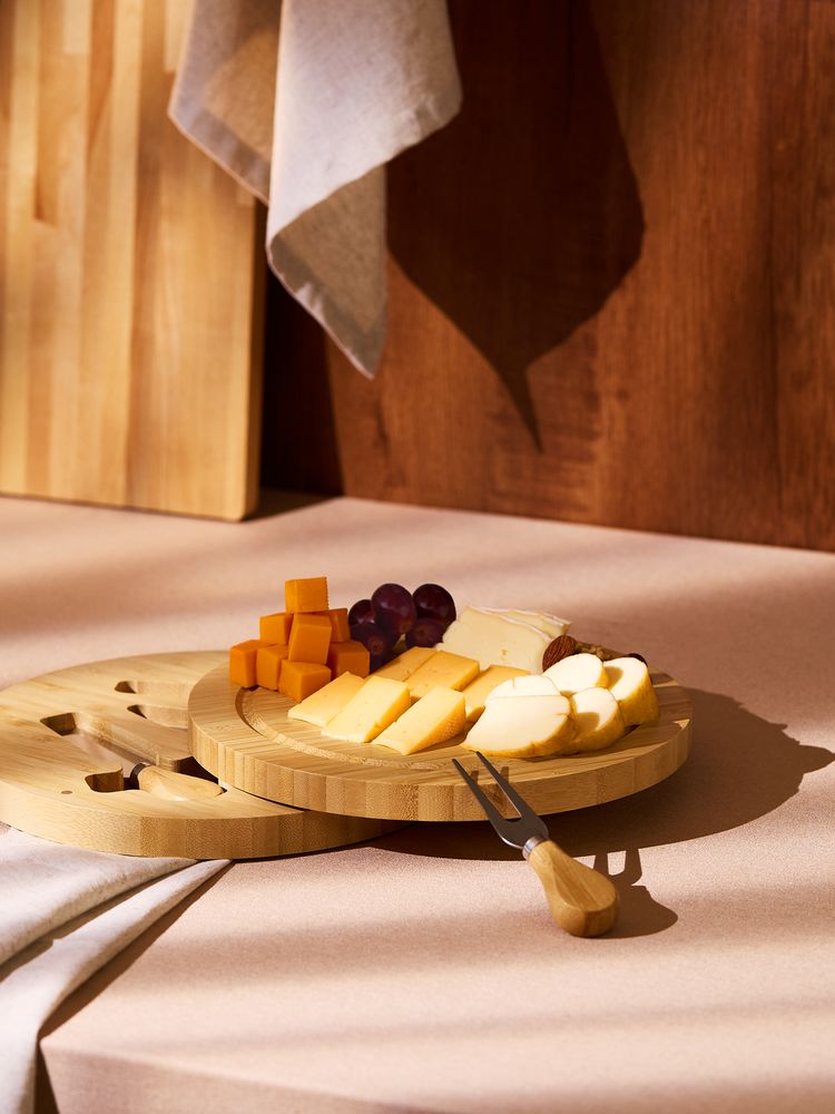 Самые сложные для разрезания сыры — твердых и мягких сортов, поэтому сырному гурману стоит обзавестись полезным универсальным набором со специальными удобными ножами и доской для нарезки и подачи.