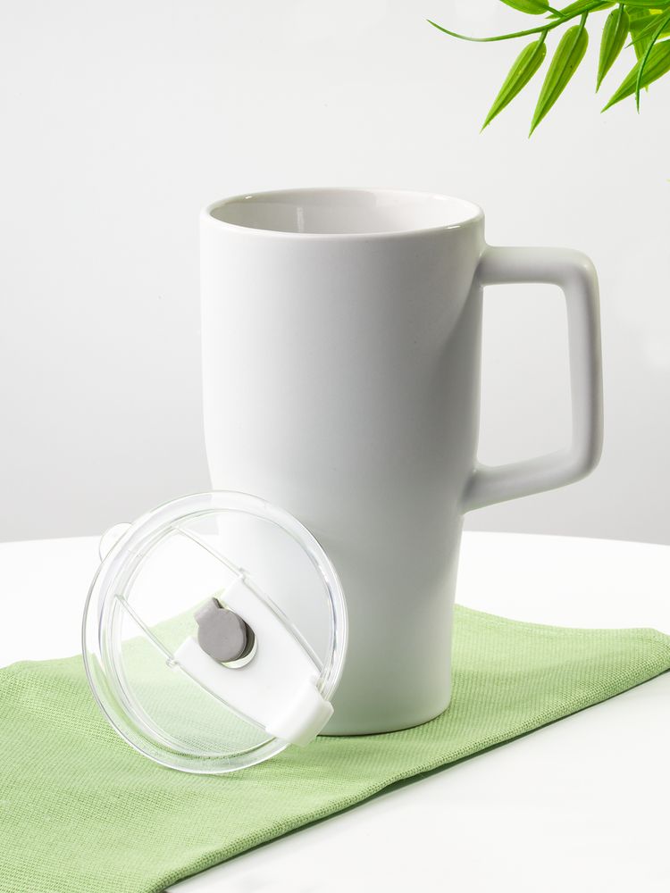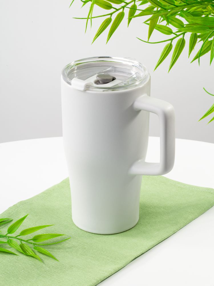 Эргономичная ручка удобно лежит в руке, а прозрачная крышка с отверстием для питья не дает содержимому разлиться на ходу или быстро остыть. Последнее особенно важно с учетом большого объема — 520 мл чая, кофе или какао хватит надолго.