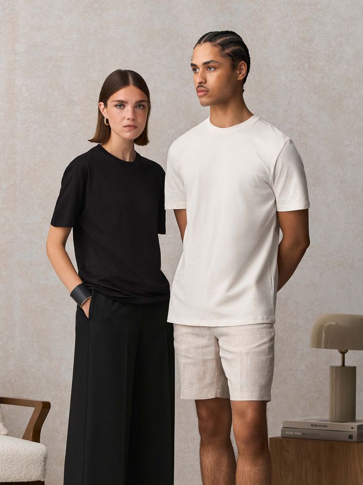Благодаря идеальным пропорциям гребенного хлопка и переработанного полиэстера в составе, а также дополнительным обработкам ее полотно обладает повышенной мягкостью, шелковистостью и очень приятно на ощупь. Кроме того, футболка меньше мнется, не теряет форму после стирок и обладает высоким показателем Qmax — коэффициента мгновенной теплопроводности, который показывает, как быстро ткань забирает тепло от кожи. Именно он обеспечивает ощутимый эффект свежести и прохлады при первом прикосновении к ткани.
