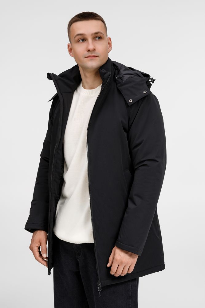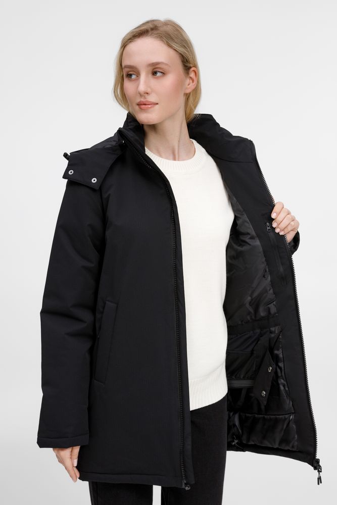 - Отстегивающийся капюшон с утяжкой и кнопками для плотного прилегания и защиты горла