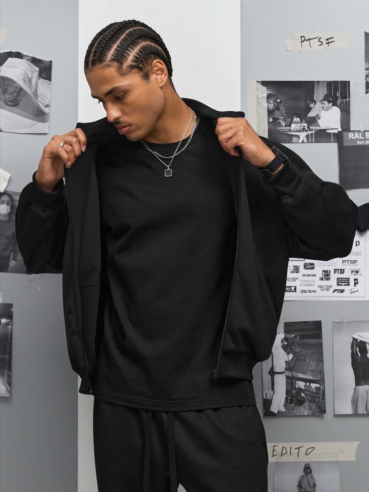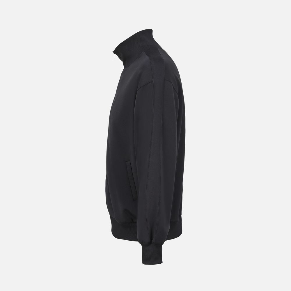 Спортивная куртка в стиле кежуал со свободной посадкой. Выполнена из технологичного трехслойного материала, известного как ткань скуба или трикотажный неопрен, в самом центре которого спрятаны объемные нити текстурированного полиэстера.