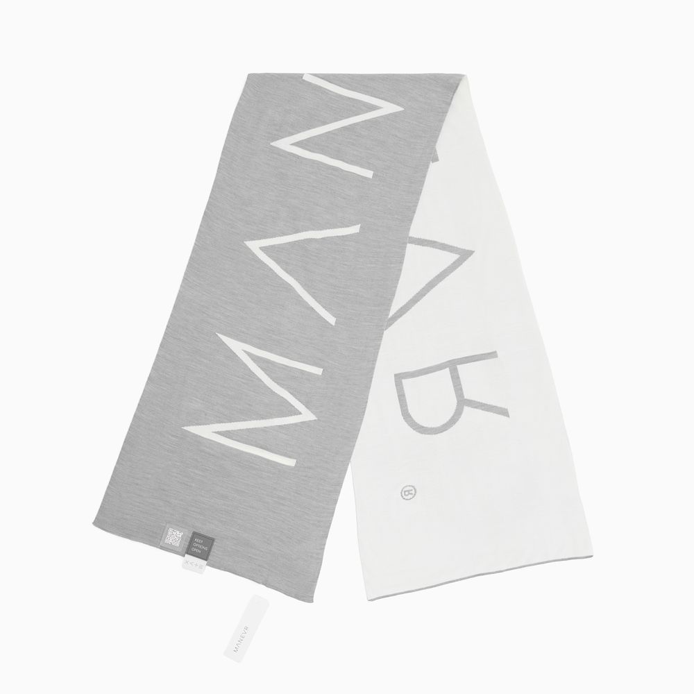 Двухцветный длинный шарф Bereg открывает дополнительное пространство для маневра. Можно добавить в образ стиля, просто накинув шарф на шею или обернув вокруг нее один раз, оставив свободными спереди оба конца с контрастной надписью.