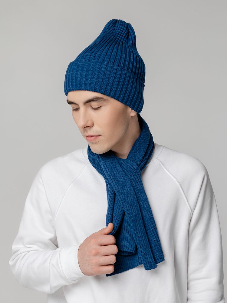 В набор входят удобный шарф с технологичным отверстием для быстрого завязывания, шапка с двойным отворотом и теплые двухслойные варежки с широкой манжетой. Все изделия связаны из акриловой пряжи, отличаются практичностью и элегантной простотой.