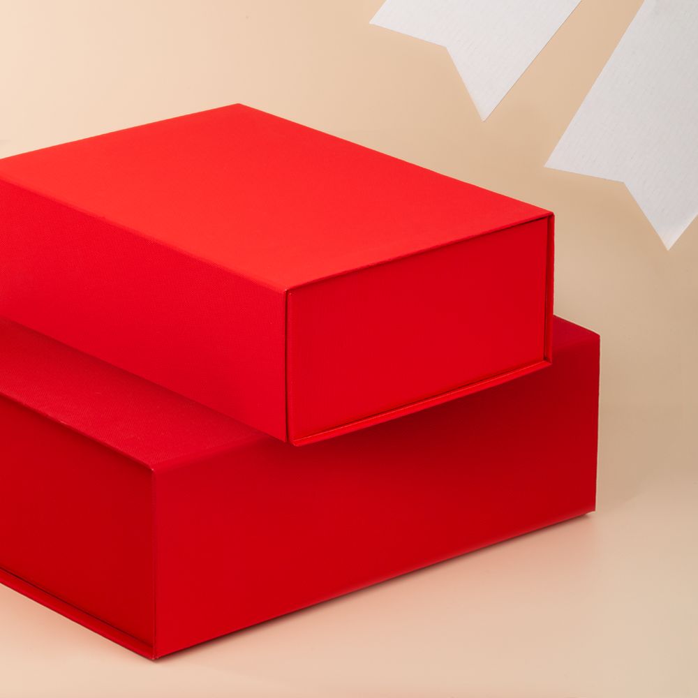 Коробка из переплетного картона, кашированного тисненой тонированной в массе бумагой, с крышкой на магните.